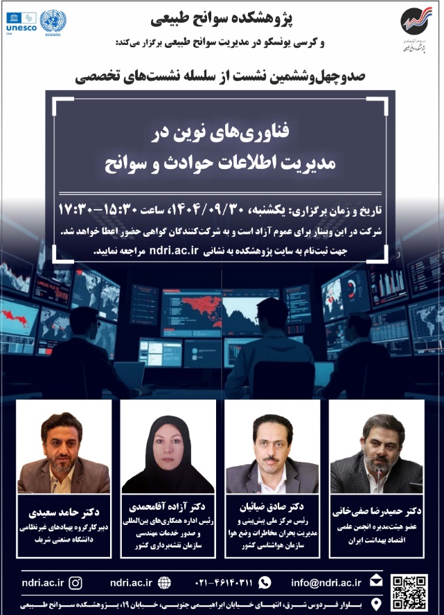 نشست فن آوری نوین در مدیریت اطلاعات حوادث وسوانح ۳۰ آذر ۱۴۰۴ | ۱۲:۰۴ کد : ۵۷۱۴۹ اطلاعیه ارسال به دیگران نام شما ایمیل شما ایمیل دریافتکننده ارسال انصراف تعداد بازدید:۲۳۰ دعوتنامه نشست فن آوری نوین در مدیریت اطلاعات حوادث وسوانح